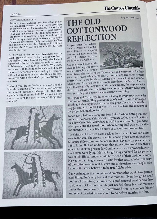 Today if you are in Medora, you can see this beautiful example of Native American artwork that most certainly belonged to the great legendary leader Sitting Bull. When you do take a look, think of the amazing story Sitting Bull’s vest tells!