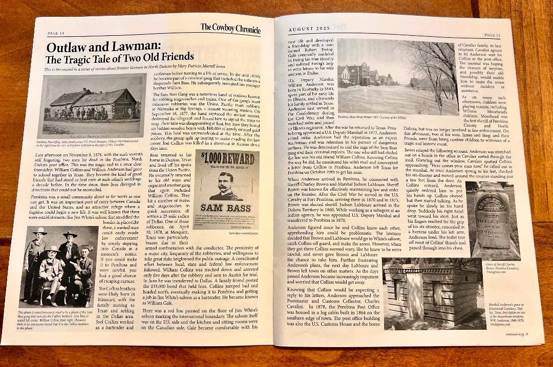 Historical Note: Many details of the lives of those involved in the Pembina Post Office shooting vary. There are no official records that confirm the friendship between Collins and Anderson, but there are local historical accounts that speak of it.